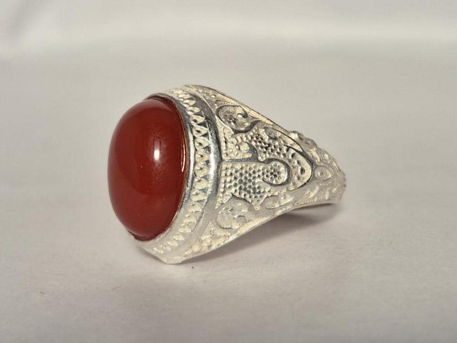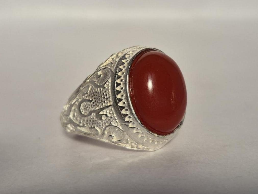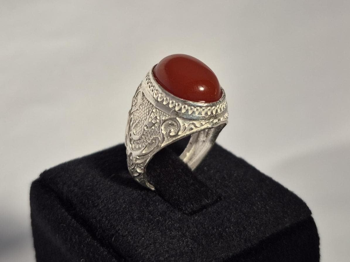 • Elevate your style and spirit with our Natural Red Aqeeq (Agate) Islamic Ring, beautifully with the name “ALI”