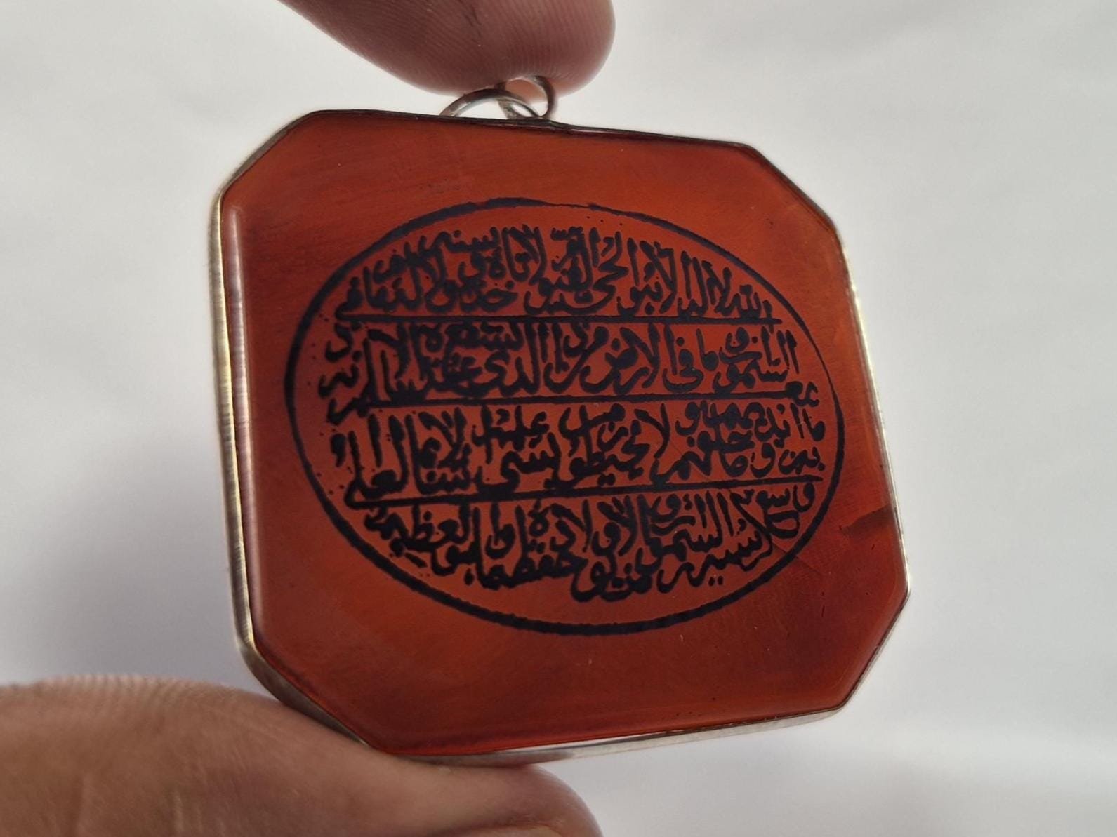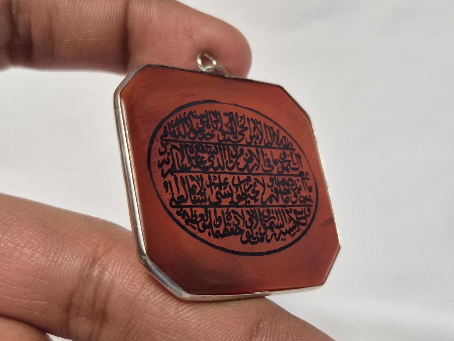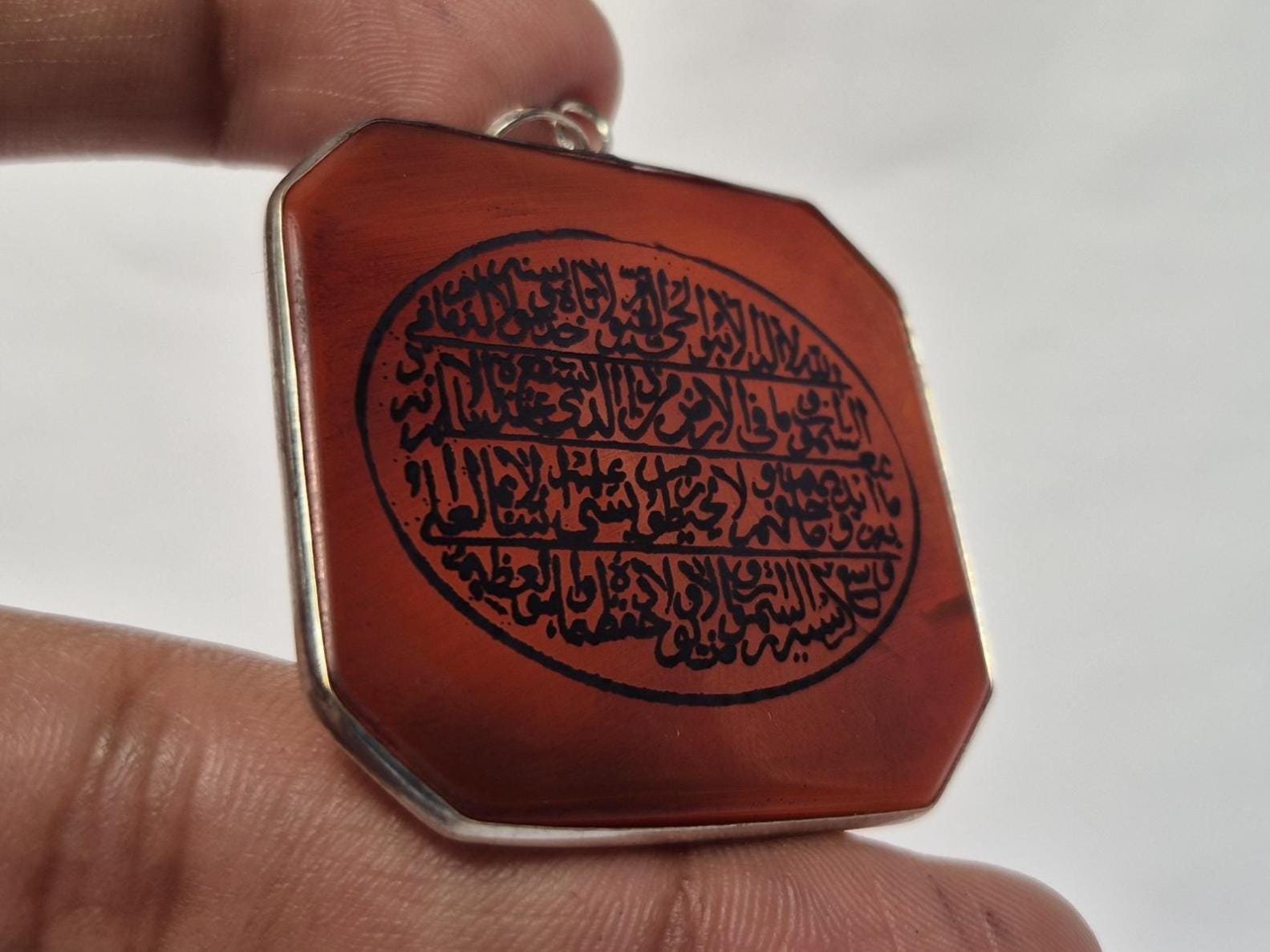 • Islamic Aqeeq (Agate) Pendant with Ayatul Kursi Engraved