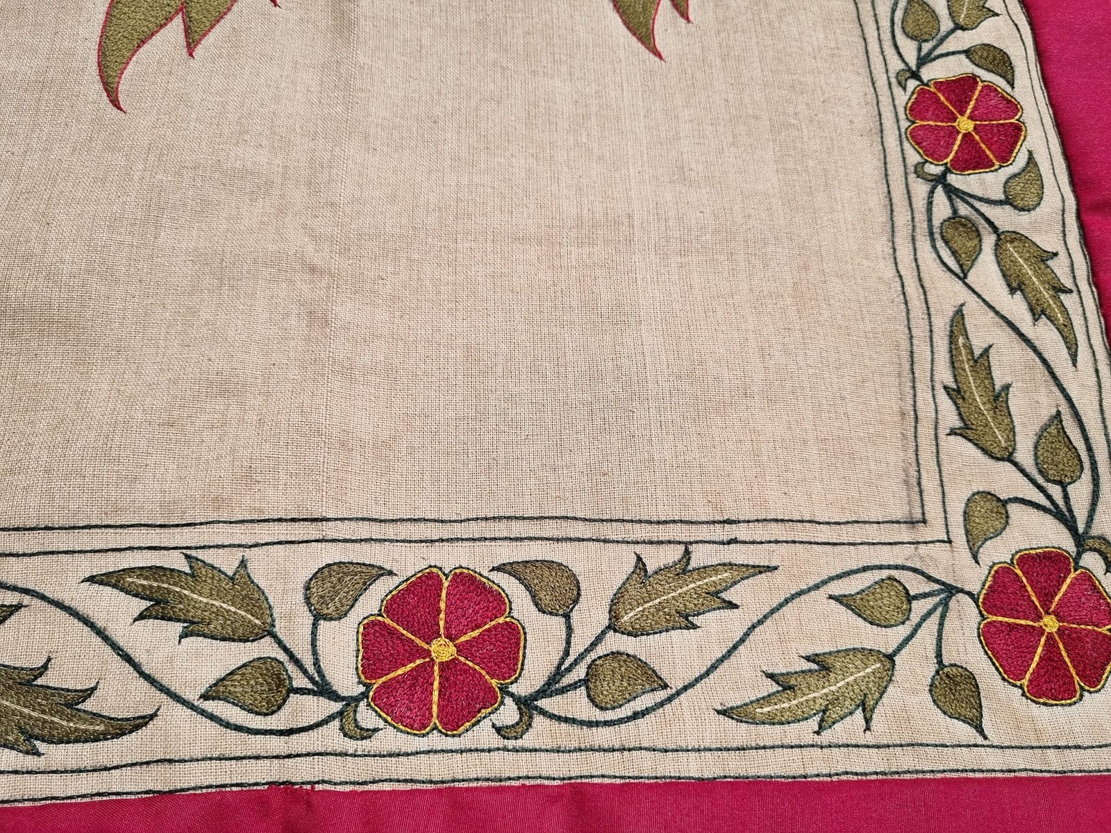 A beautiful hand made Embroidered Wallhanging Mughal Flower Design, Tree of life theme, vintage look Indian embroidery