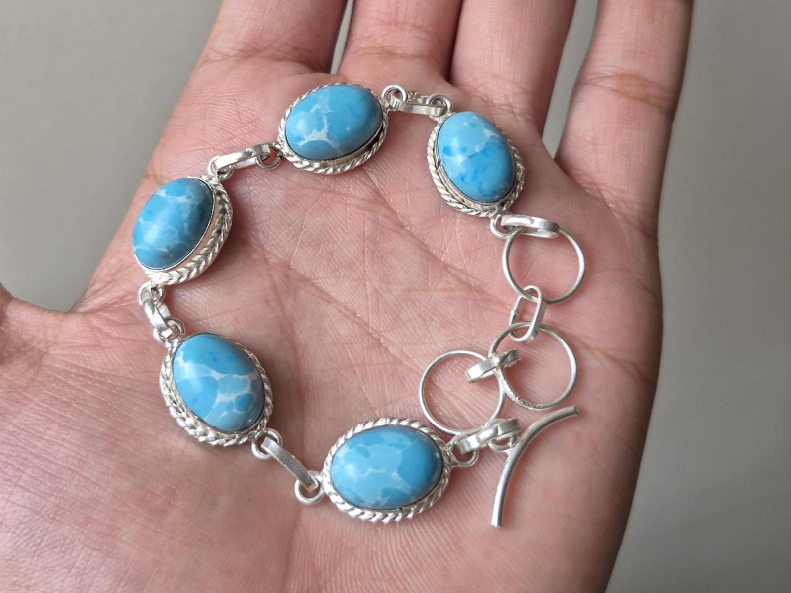 • Add a touch of ocean magic to your look with our Larimar Adjustable Bracelet — featuring the calming blue hues of the Sea.
