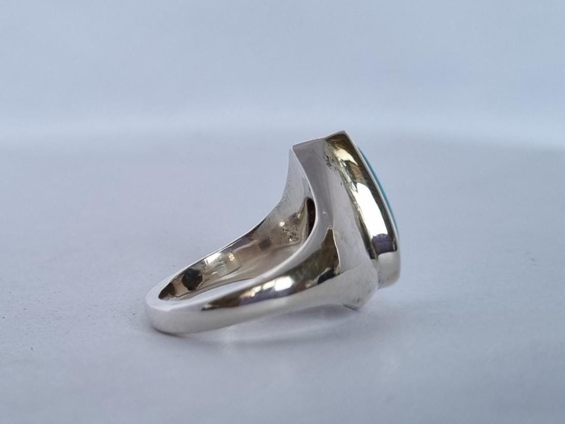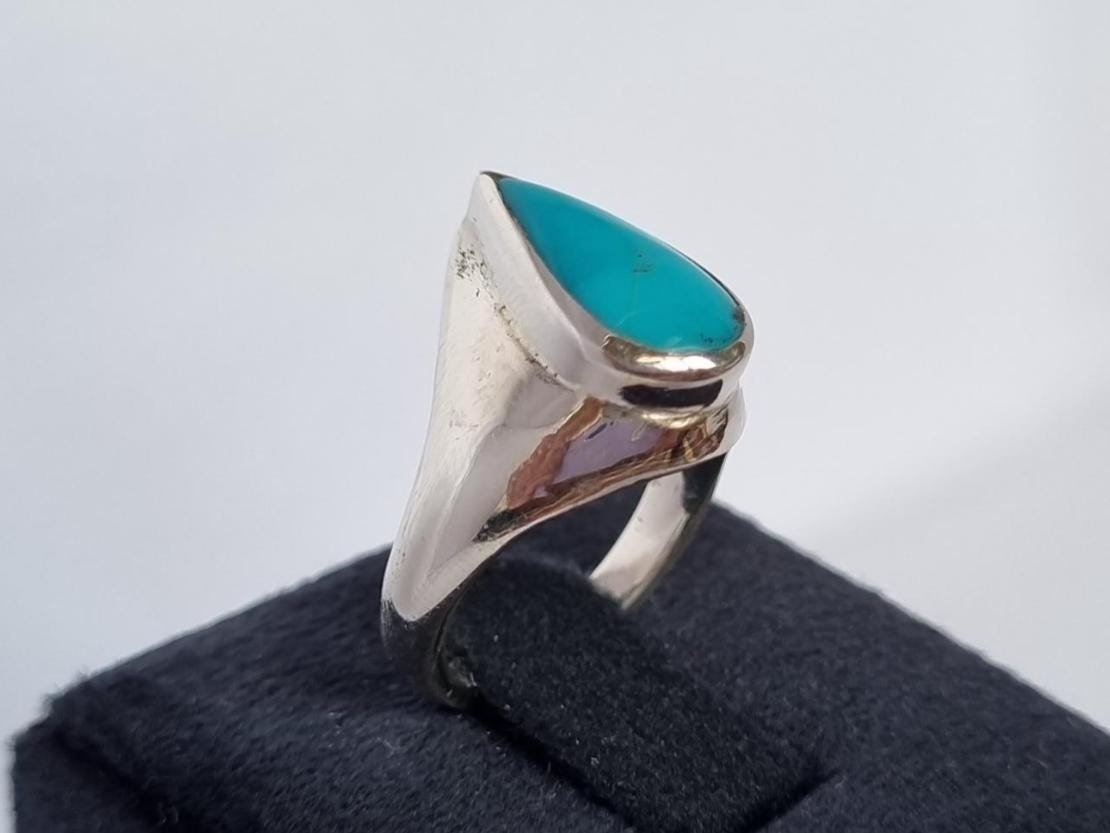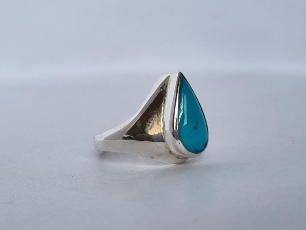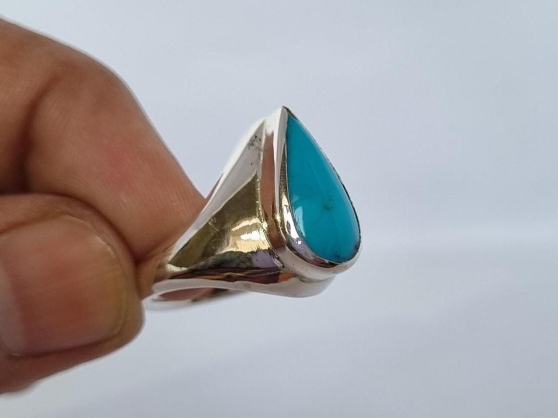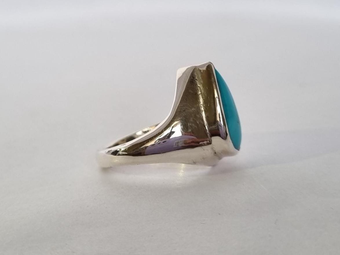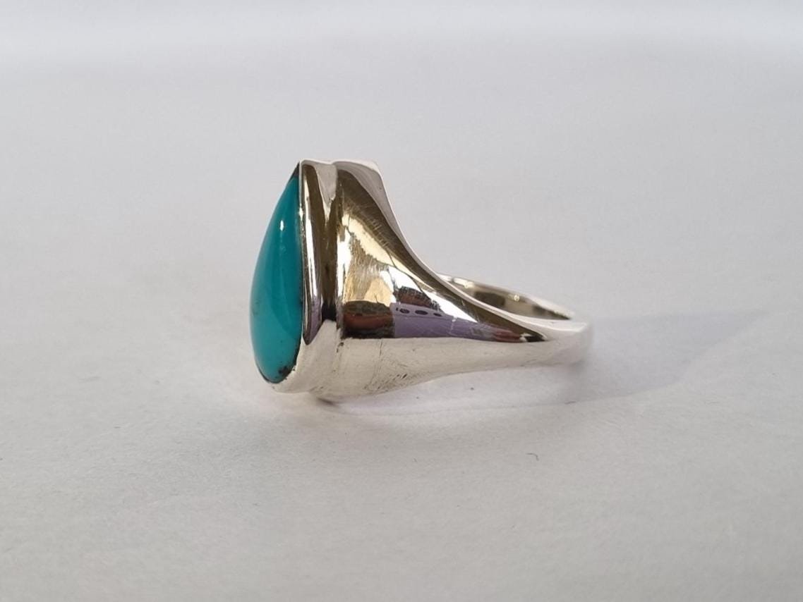 • Crafted with love and precision, this ring features a stunning pear-cut turquoise stone set in pure sterling silver.
