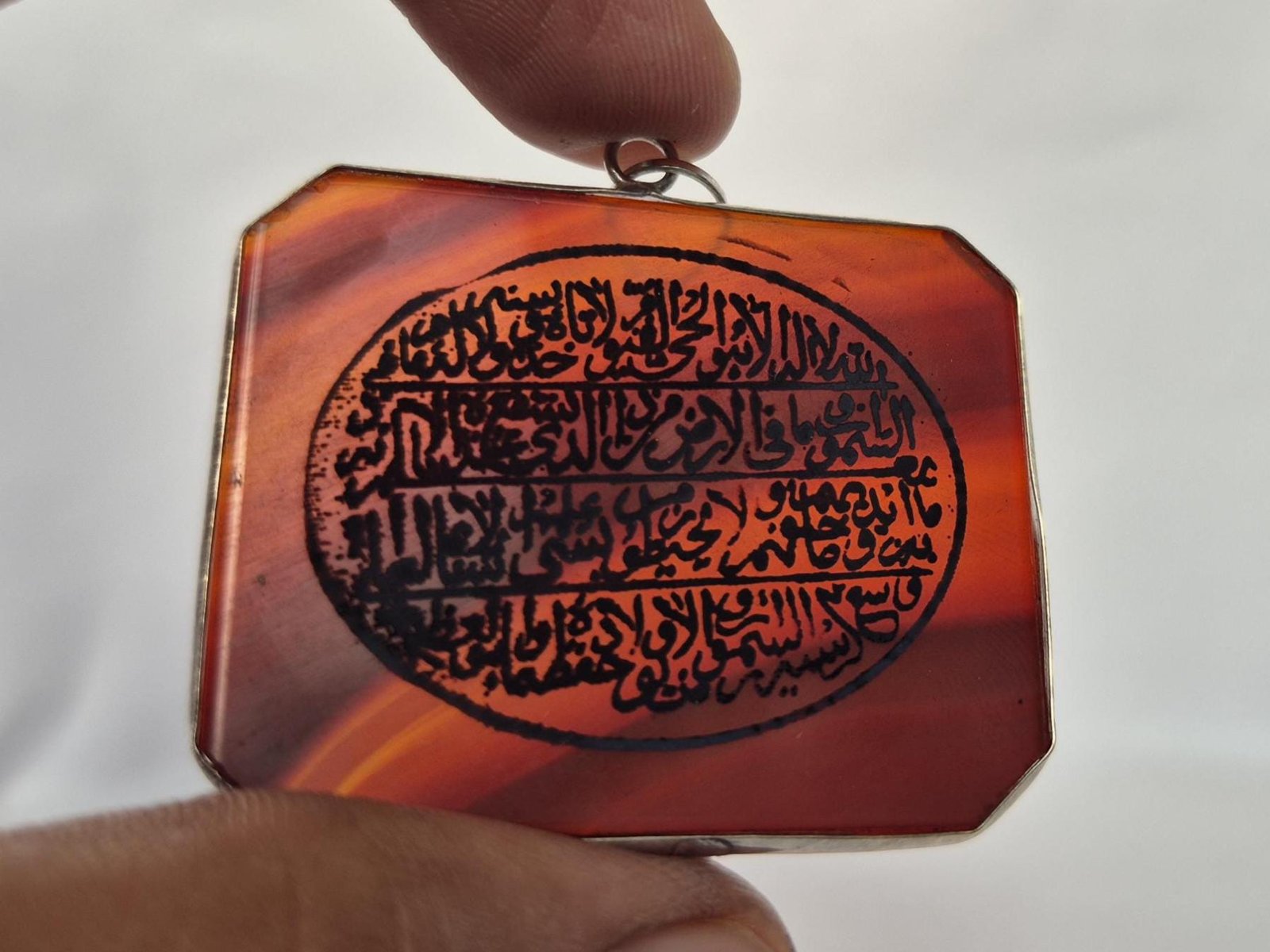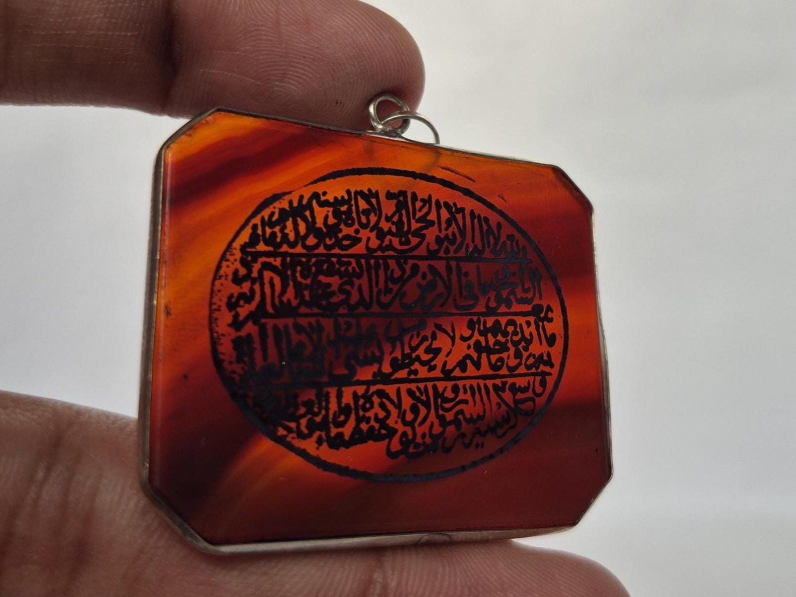 Islamic aqeek(agate) pendant with ayat ul kursi engraved, Unique Islamic Agate pendant , Yemeni Aqeeq Pendant, Red Yemeni Aqeeq – Agate .