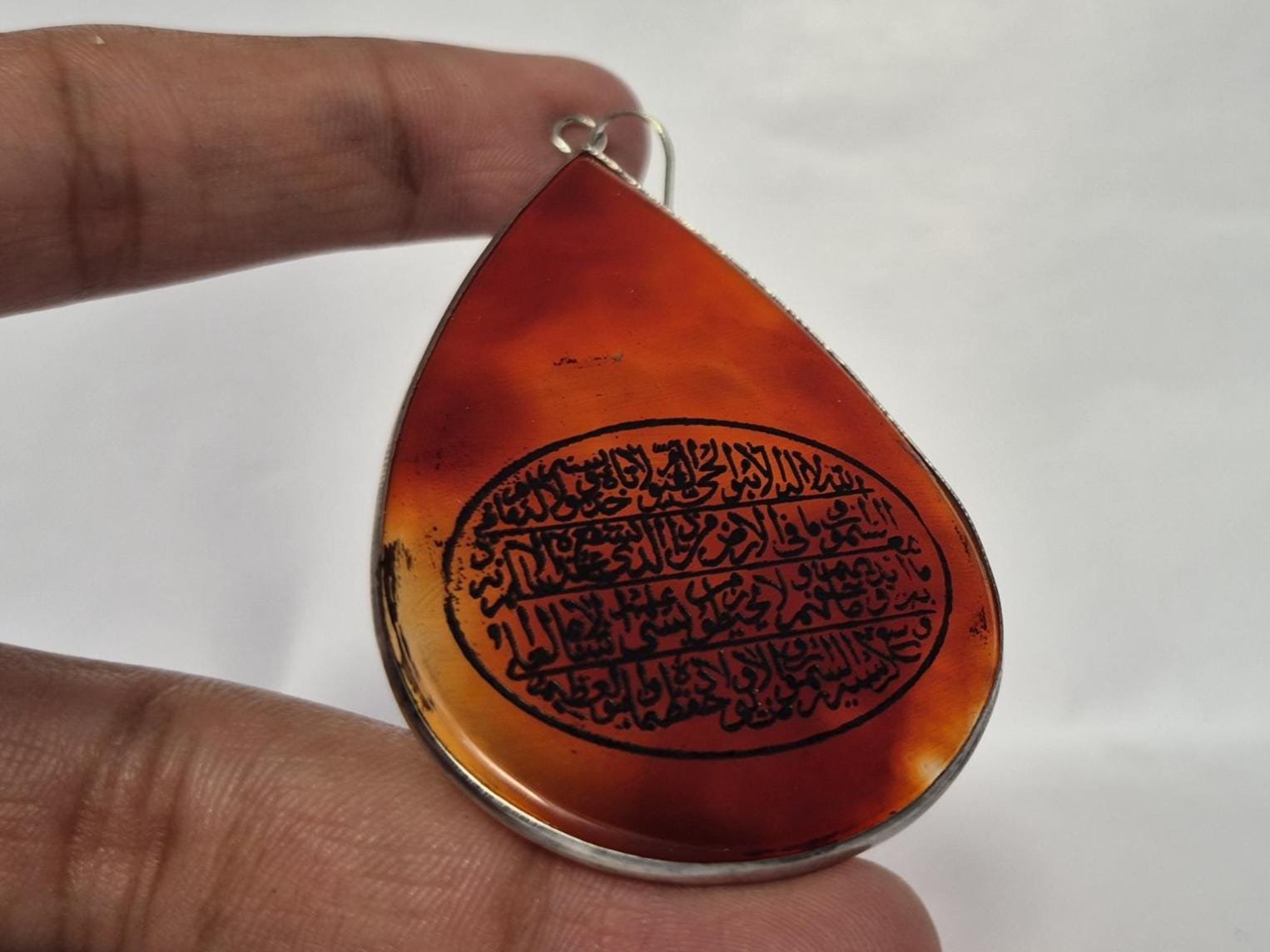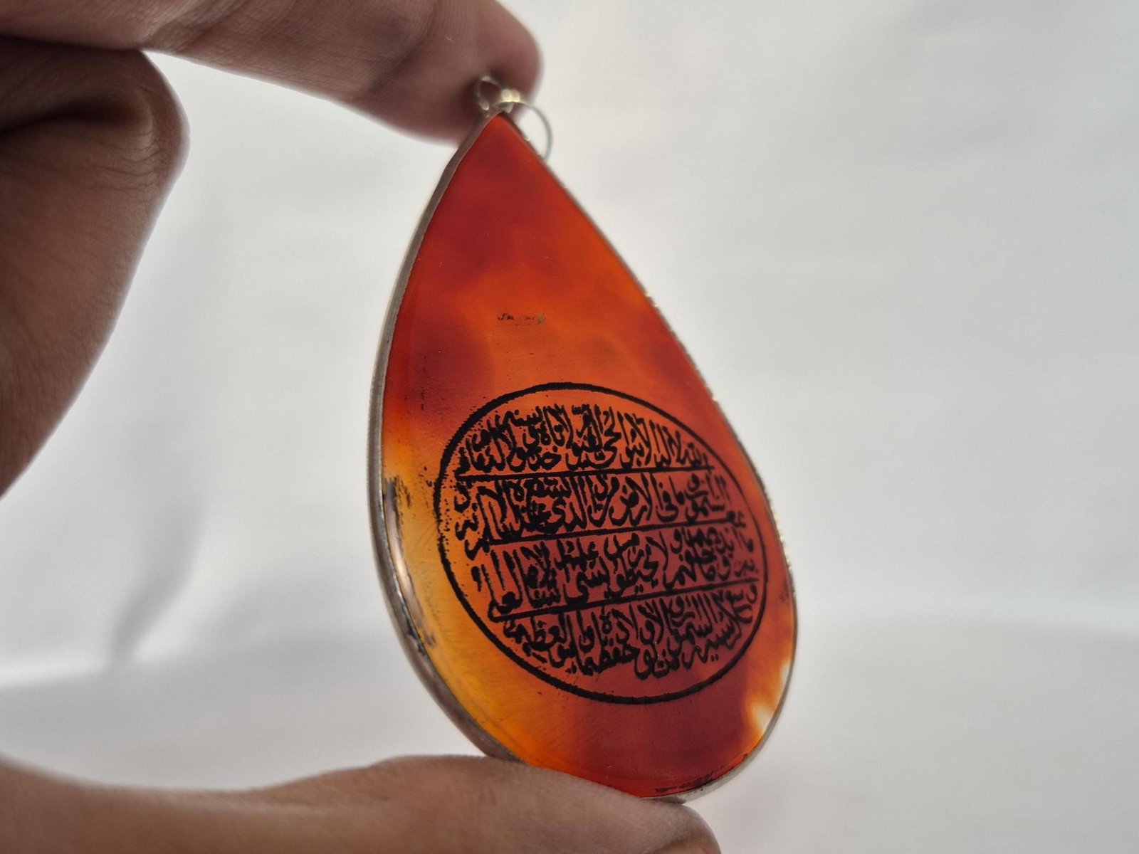 Islamic aqeek(agate) pendant with ayat ul kursi engraved, Unique Islamic Agate pendant , Yemeni Aqeeq Pendant, Red Yemeni Aqeeq – Agate .