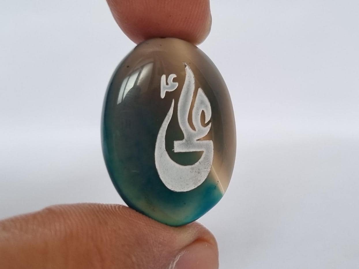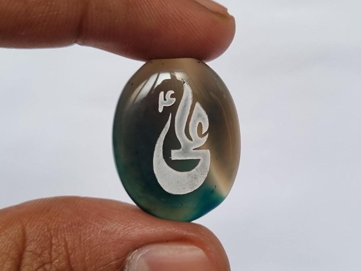 • Elevate your spiritual style with our stunning Blue Aqeeq (Agate) Pendant, beautifully engraved with the noble name “Ali” (علي) — a symbol of courage, wisdom, and faith.