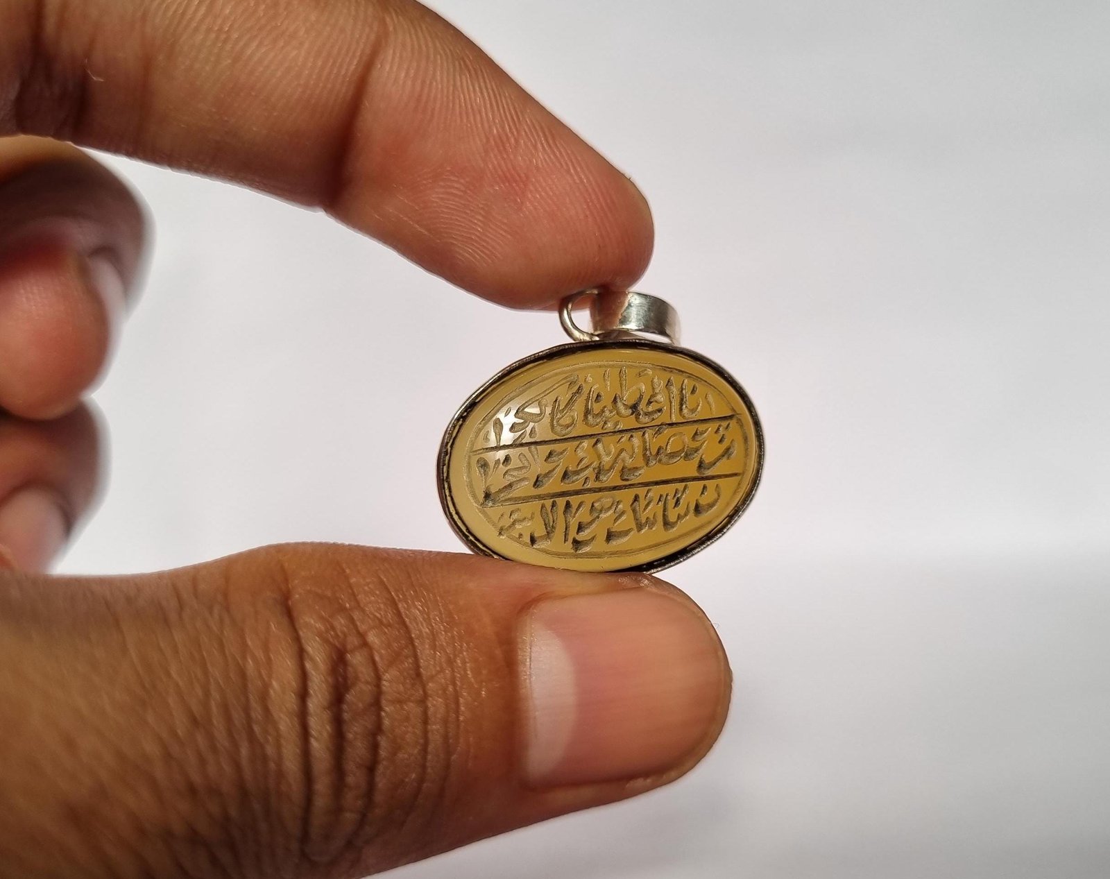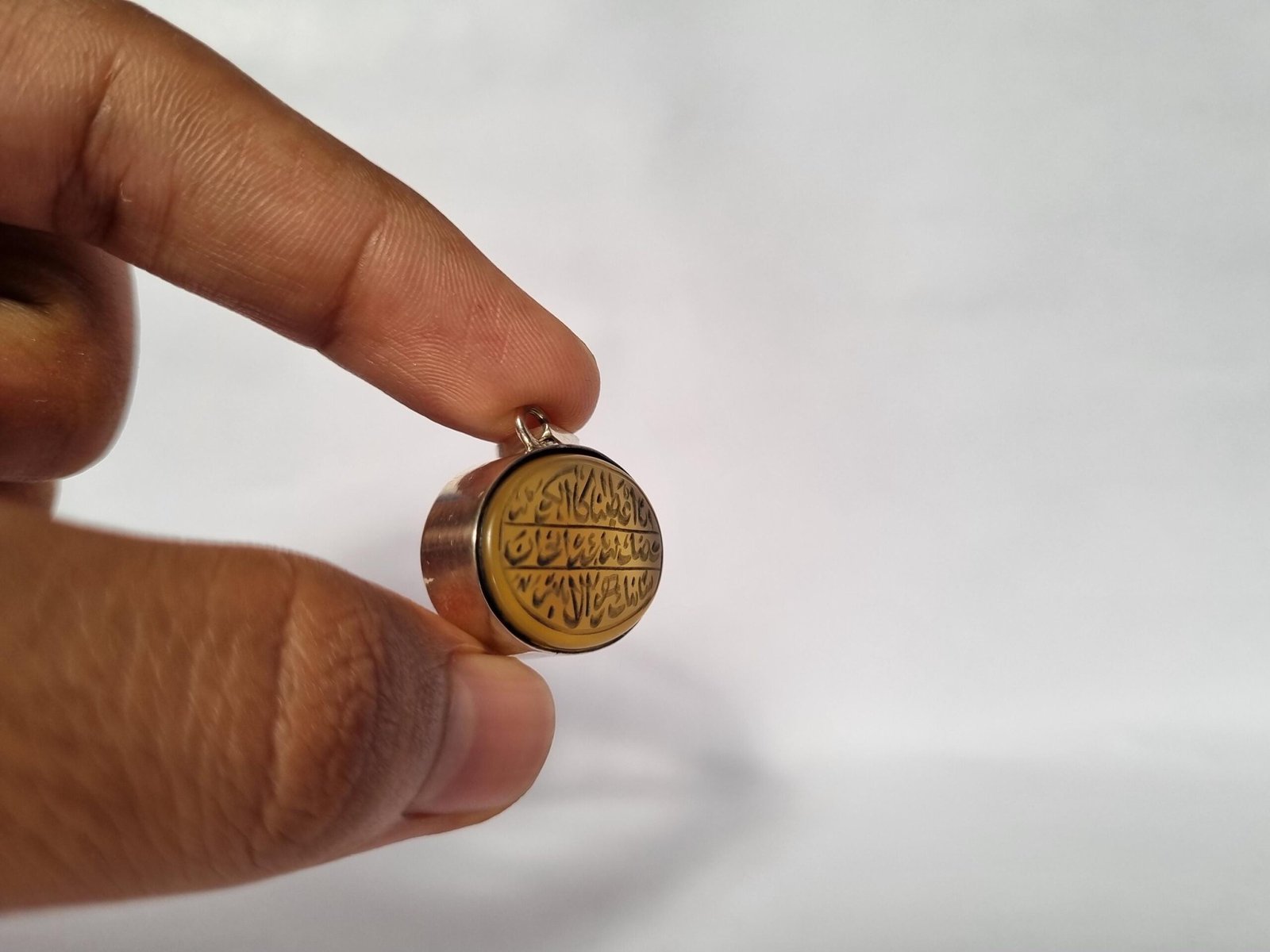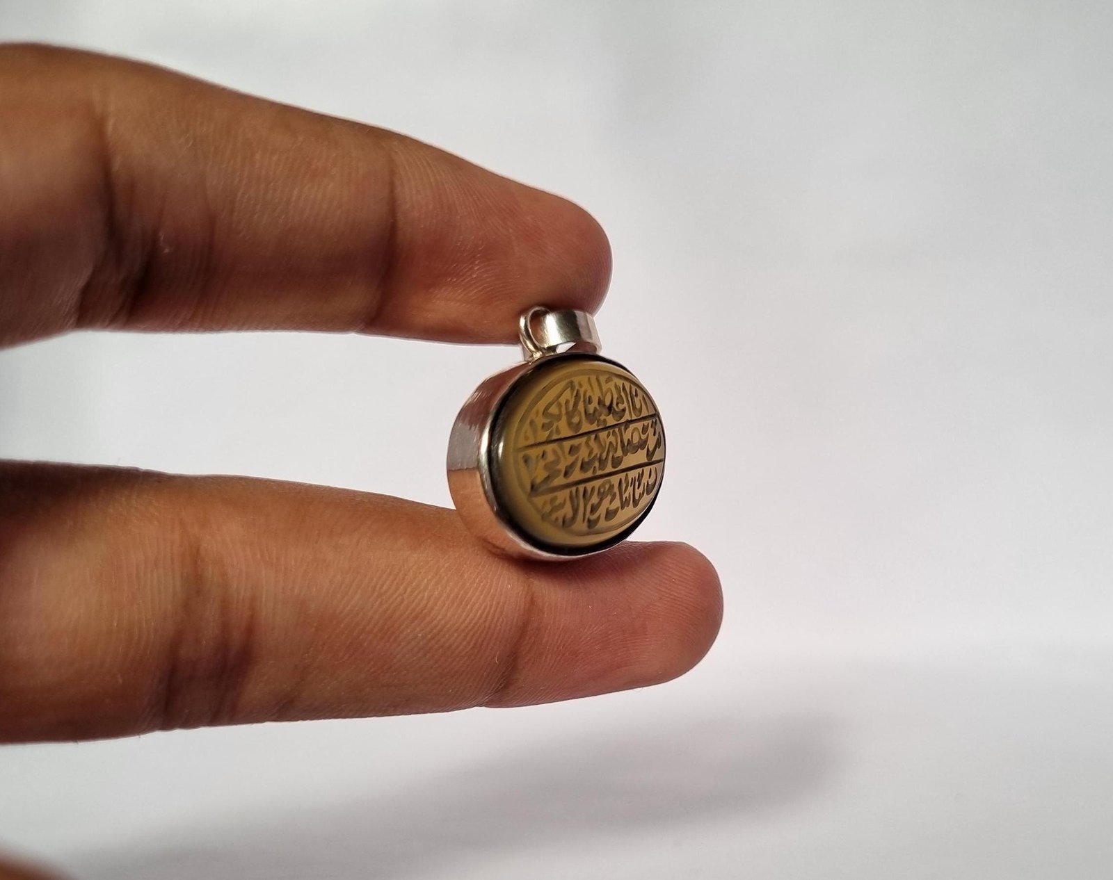 • Discover the elegance of our handcrafted Islamic Aqeeq (agate) pendant, beautifully engraved with Surah Al-Kausar.
