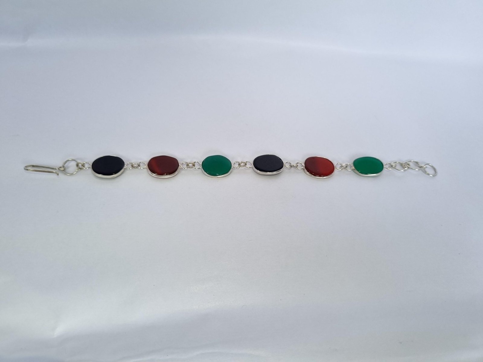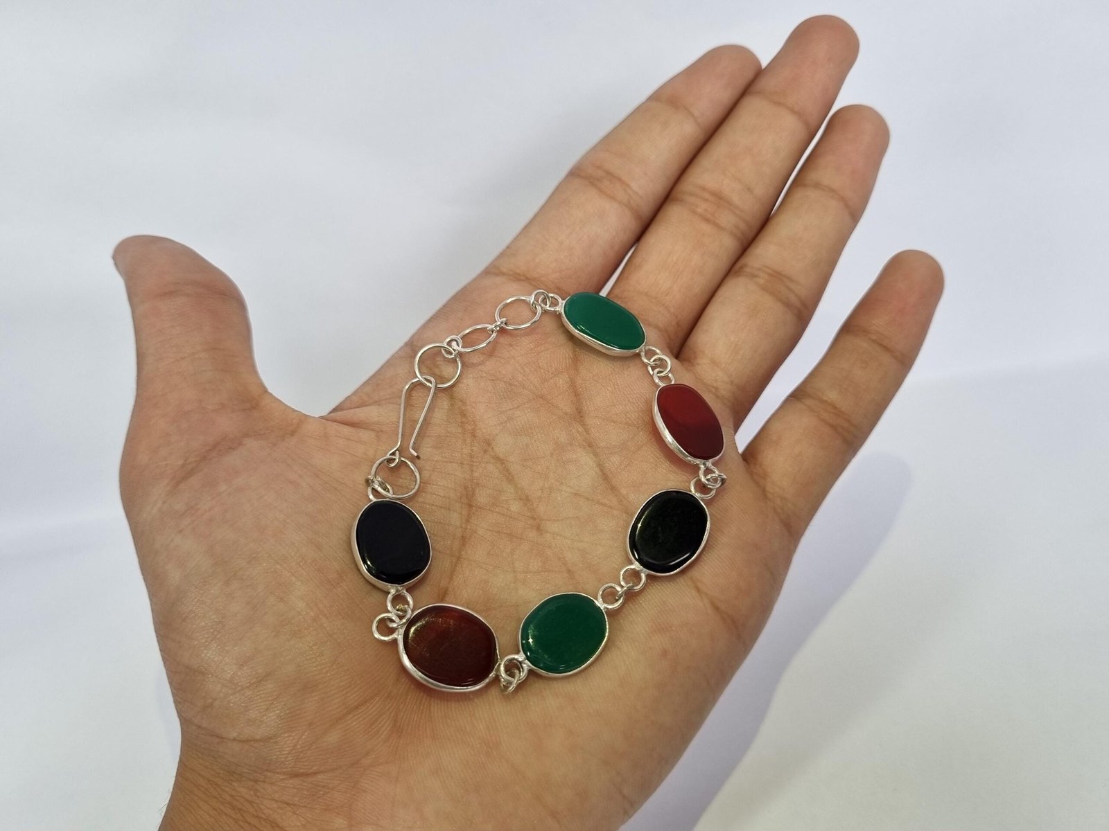• Introducing our stunning Natural Aqeeq (Agate) Bracelet, a vibrant blend of multi-colored Red, Green, and Black Agate stones.