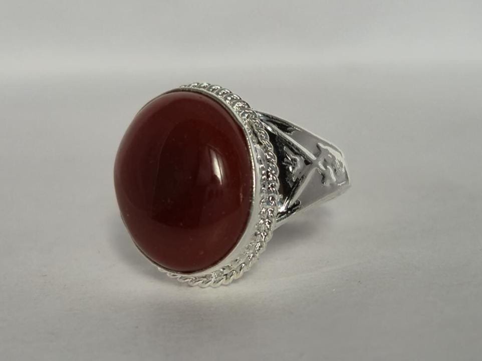 • This exquisite ring features a striking Red agate stone, renowned for its protective and grounding properties.