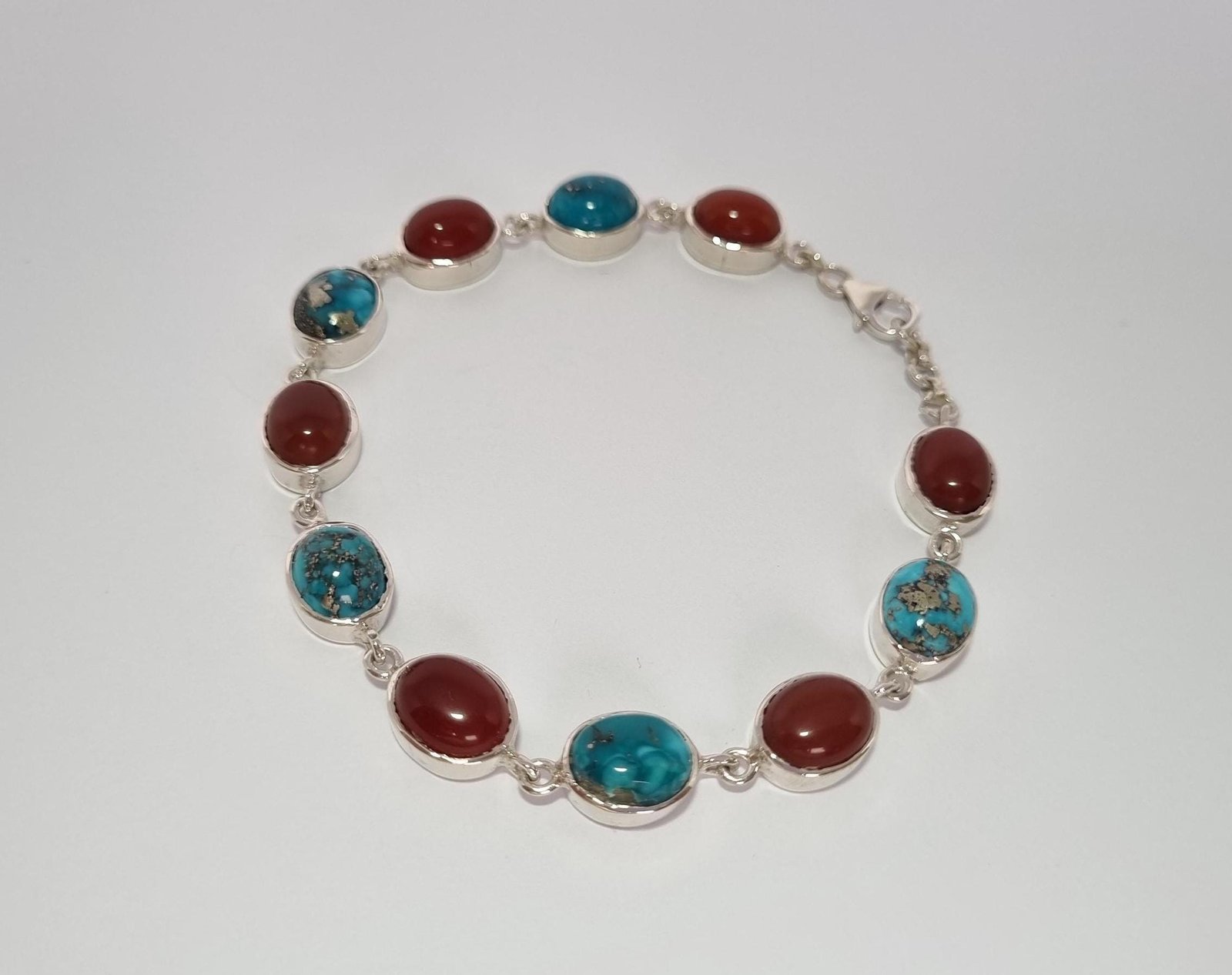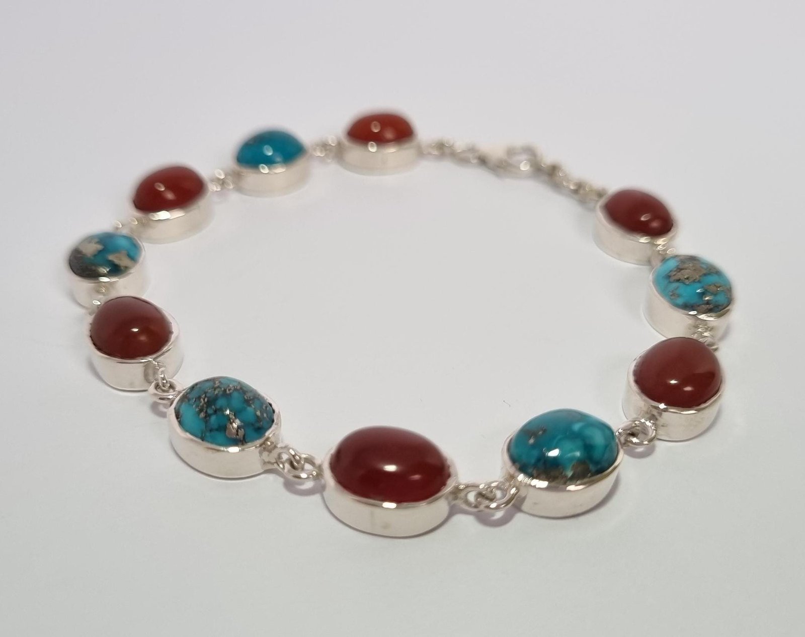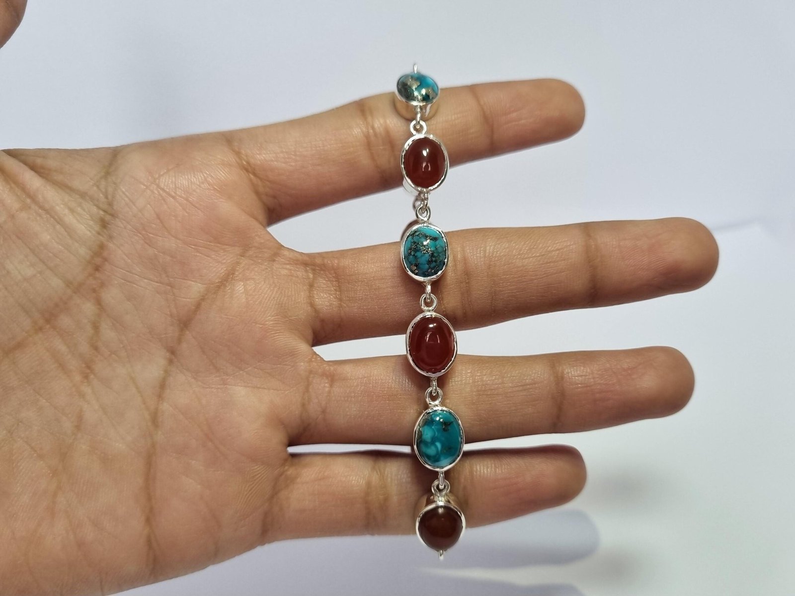 • Enhance your style with our exquisite Natural Aqeeq and Turquoise Bracelet, beautifully crafted in premium sterling silver.