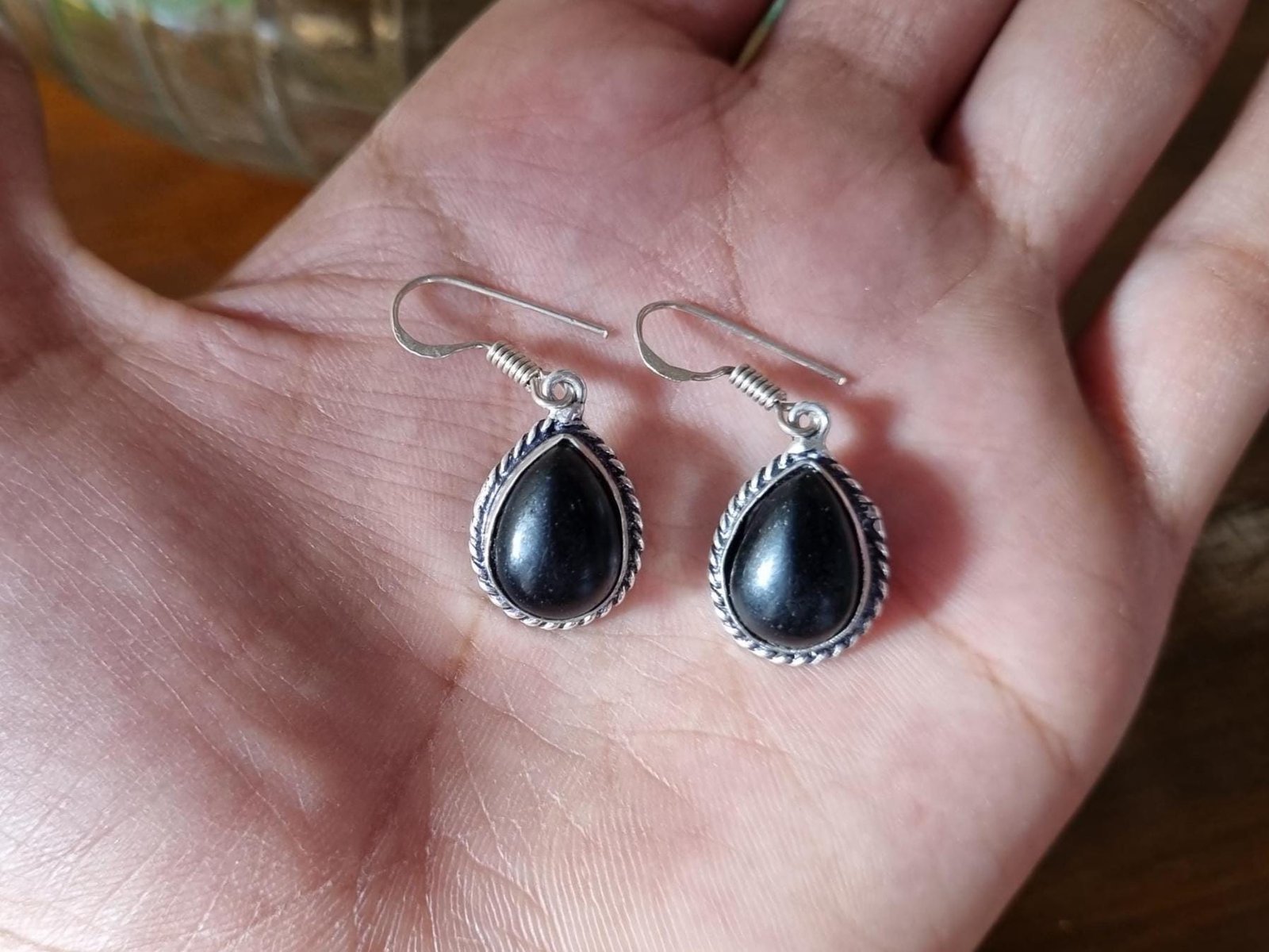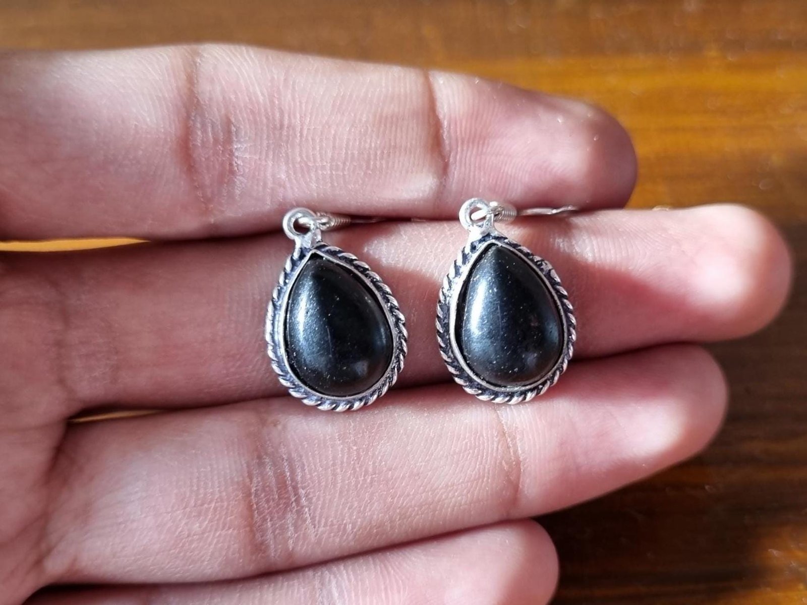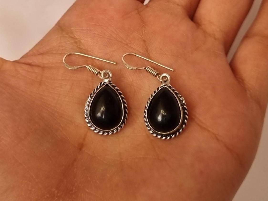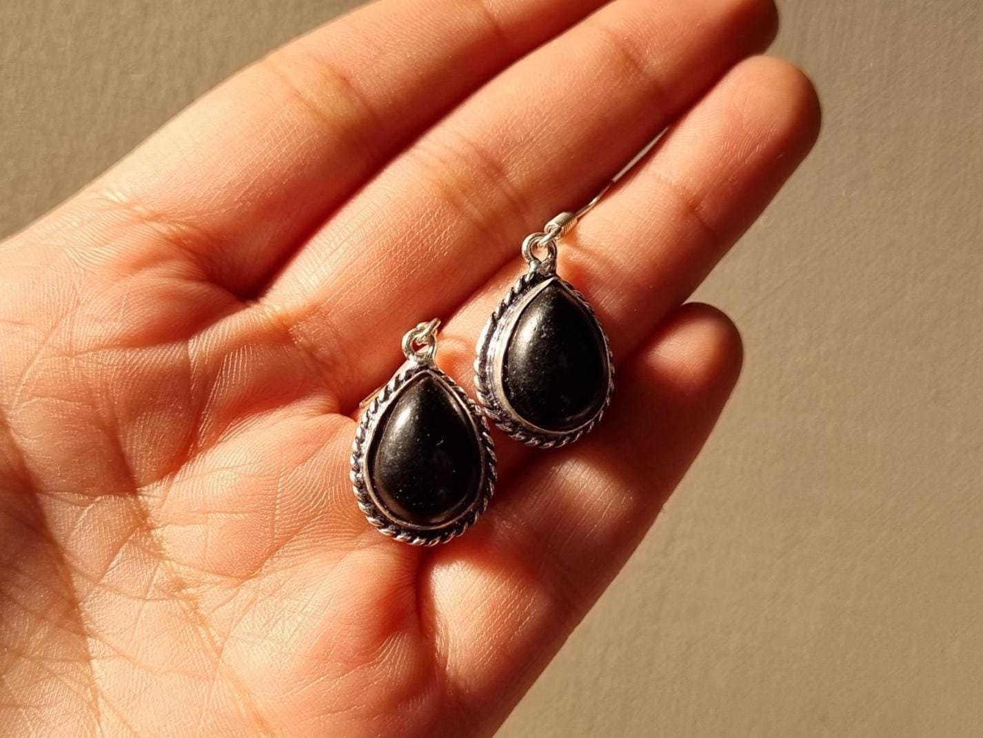 • Black Onyx Teardrop Earrings – Elegant Gift for Her