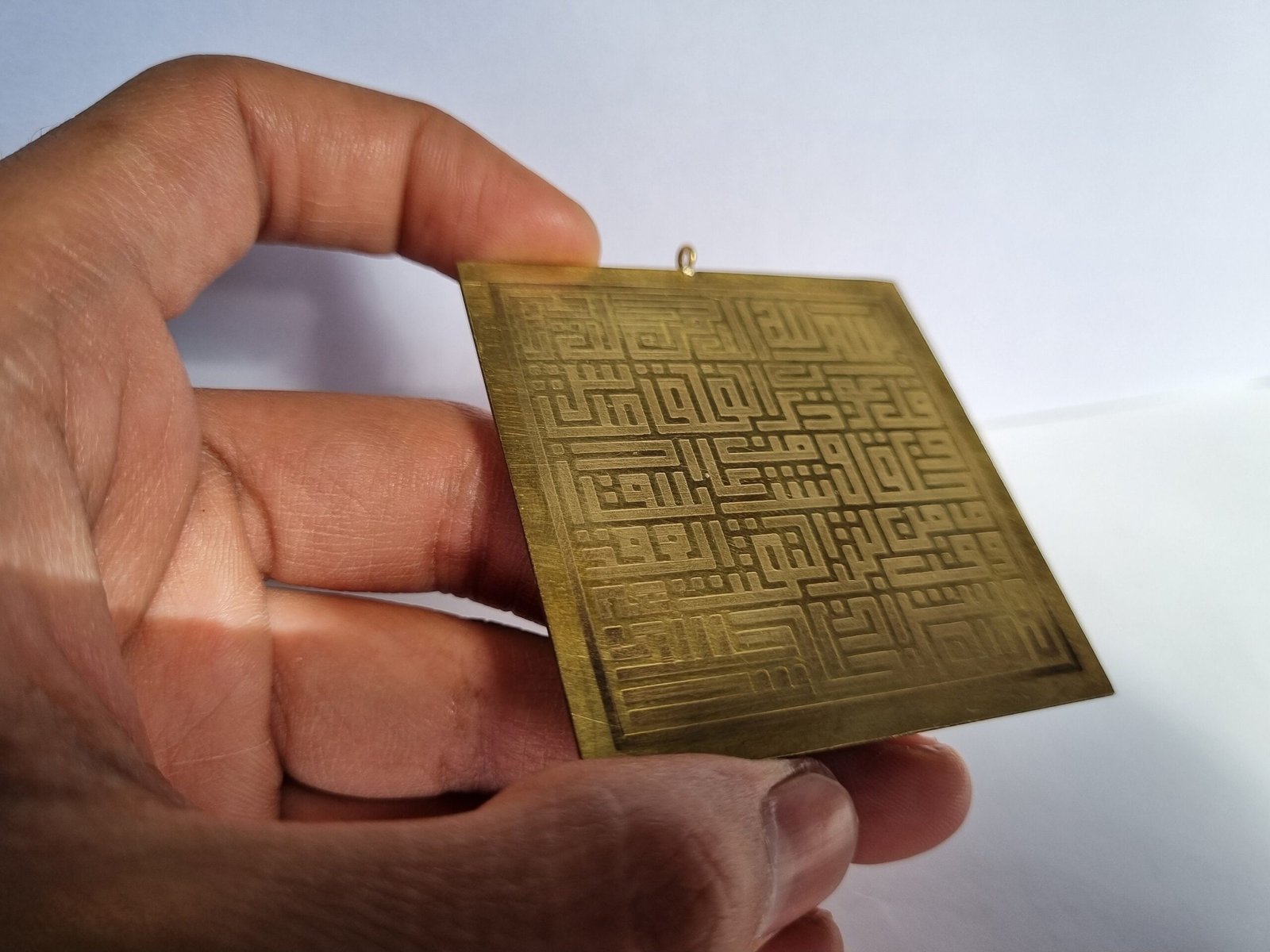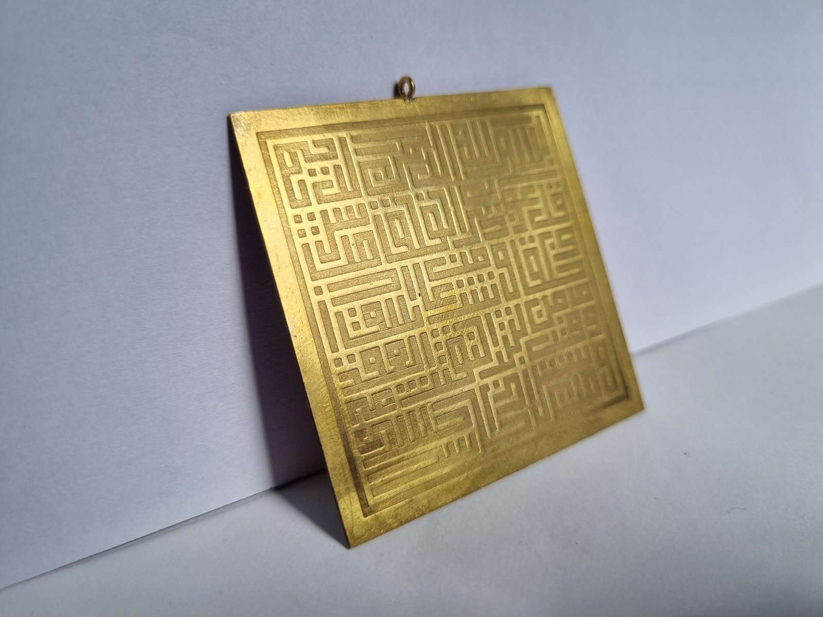 • Crafted with precision and adorned with intricate Kufic script, this square-shaped pendant symbolizes protection and guidance.